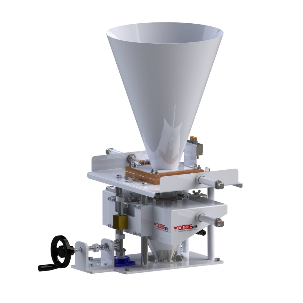 O dosador volumétrico DGV é específico para produtos de forma regular. Utilizado sobre empacotadoras em processos automáticos, possui acionamento pneumático com partes em contato com o produto em aço inox AISI 304.